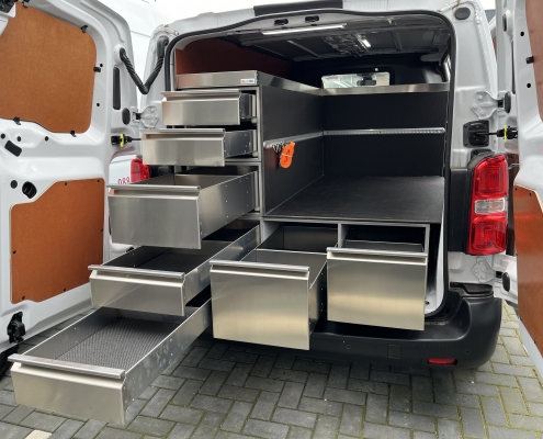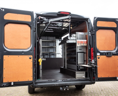Het resultaat? Een praktische, overzichtelijke en duurzame bedrijfswagen, waarin u efficiënter kunt werken en alles zijn vaste plek heeft.